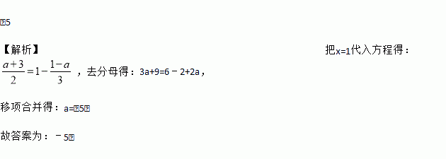 已知x=1是方程的解,则a=________.