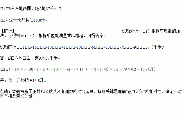 (2)若汽车行驶每千米耗油0.2升,那么这一天共耗油多少升?