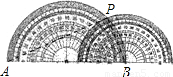 【答案】分析:依题意,设大量角器的左端点为A,小量角器的圆心为B.利用三角形的内角和定理求出∠PAB的度数.然后根据圆的知识可求出大量角器上对应不度数.