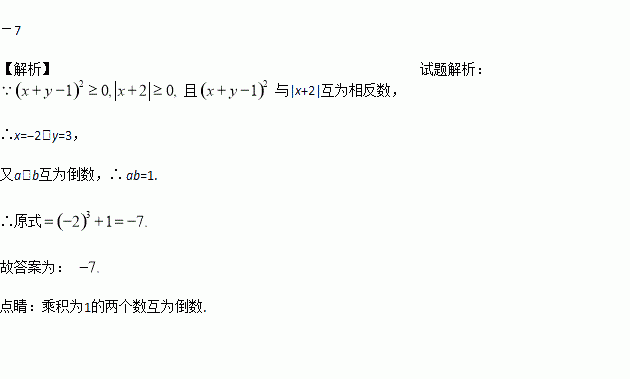 已知(x+y﹣1)2与|x+2|互为相反数,a、b互为倒数,试求xy+a b的值为__________