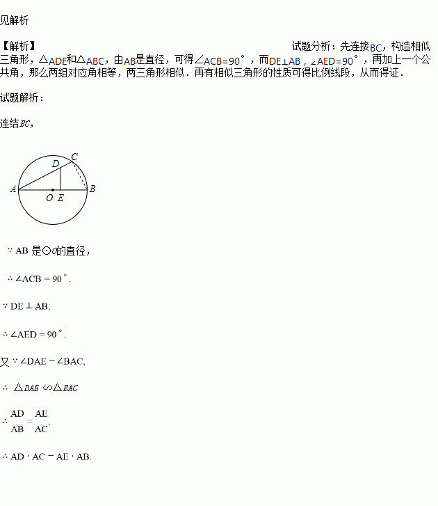 如图,已知AB是⊙O的直径,点D在弦AC上,DE⊥AB于E.求证: