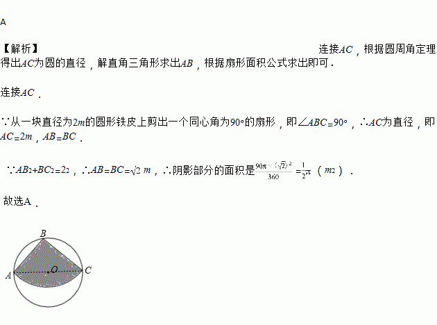 如图,从一块直径为的圆形铁皮上剪出一个圆心角为90°的扇形.则此扇形的面积为( )