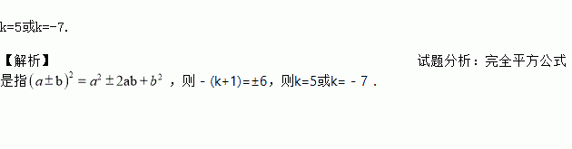 二次三项式x 2 -(k+1)x+9是一个完全平方式,则k的值是_________.