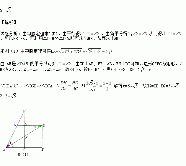 如图,已知点C为线段AB的中点,CD⊥AB且CD=AB=4,连接AD,BE⊥AB,AE是的平分线,与DC相交于点F,EH⊥DC于点G,交AD于点H,则HG的长为