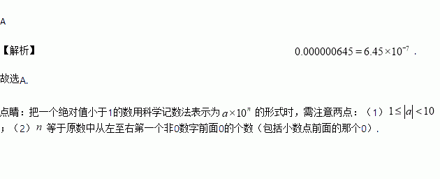 A. 6.45×10- 7 B. 64.5×10-8 C. 0.645×10-6 D. 6.45×10-6