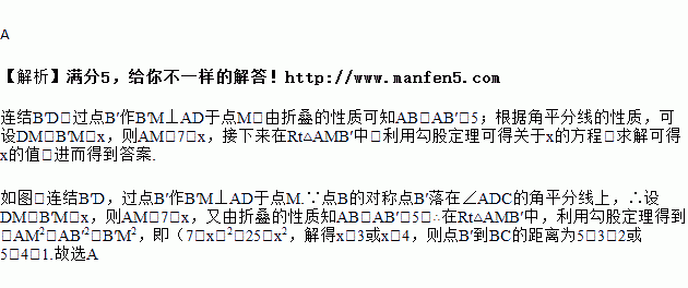 如图,在矩形中,,,点为上一动点,把沿折叠,当点的对应点落在的角平分线上时,则点到的距离为( ).