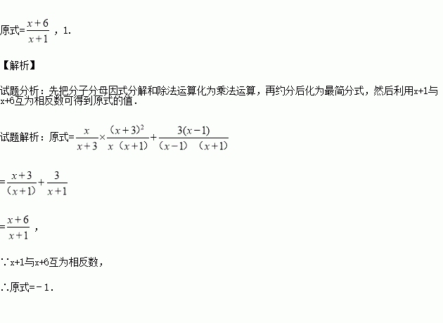 先化简:,再求当x+1与x+6互为相反数时代数式的值.