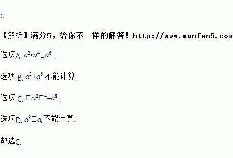 A. a2•a4 B. a2+a6 C. (a2)4 D. a9﹣a