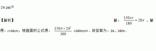 已知扇形的圆心角为1500,弧长为20πcm,则扇形的半径为_______cm,面积________cm2.