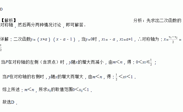 已知二次函数y=(x+a)(x﹣a﹣1),点P(x0,m),点Q(1,n)都在该函数图象上,若m<n,则x0的取值范围是( )