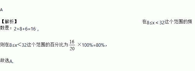 某棉纺厂为了解一批棉花的质量,从中随机抽取了20根棉花纤维进行测量,其长度x(单位:mm)的数据分布如表所示,则棉花纤维长度的数据在8≤x<32这个范围的百分比为( )
