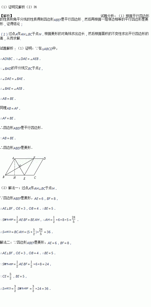如图,在□ABCD中,∠BAD的平分线交BC于点E,∠ABC的平分线交AD于点F,AE与BF相交于点O,连接EF