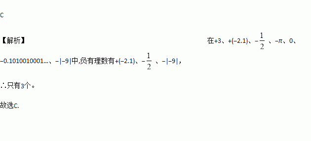 在数下列各数:+3、+(﹣2.1)、﹣、﹣π、0、﹣0.1010010001…、﹣|﹣9|中,负有理数有( )个.