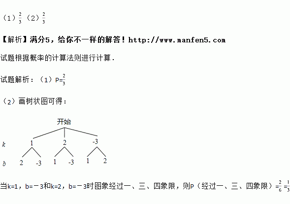 (2)用画树状图或列表法求所得到的一次函数的图像经过第一、三、四象限的概率.![]()