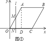 ①0≤t≤2时,直线l与OA、OC两边相交,(如图①).