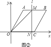 ①当0≤t≤2时,直线l与OA、OC两边相交,此时ON=t,MN=