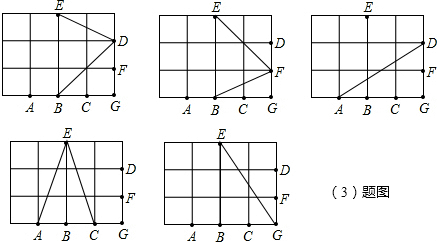 £¨3£©ÈçͼËùʾ£¬¡÷BDE¡¢¡÷BFE¡¢¡÷ADG¡¢¡÷ACE¡¢¡÷BGEµÄÃæ»ý¶¼ÊÇ3£¬¹²ÓÐ5¸ö£®