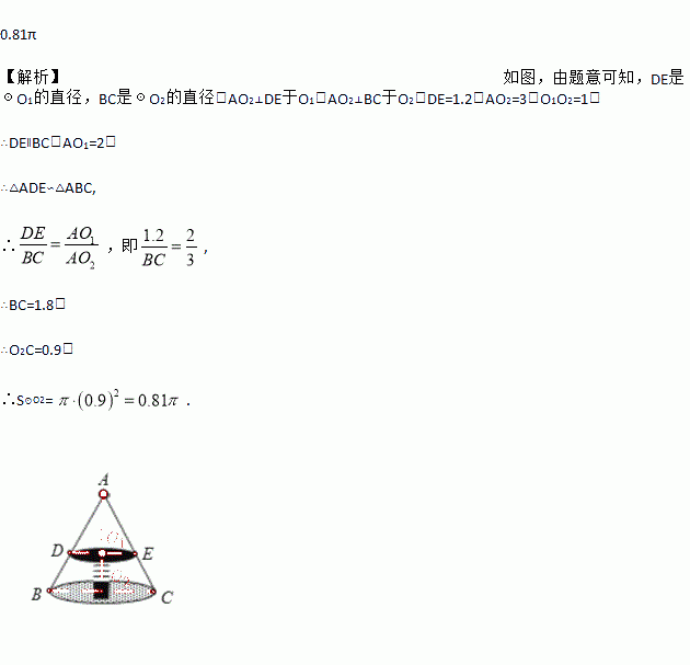 如图,这是圆桌正上方的灯泡(看作一个点)发出的光线照射到桌面后在地面上形成(圆形)的示意图. 已知桌面直径为1.2米,桌面离地面1米. 若灯泡离地面3米,则地面上阴影部分的面积为__________(结果保留π)