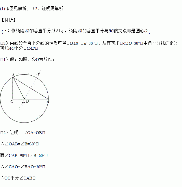 用直尺和圆规作,使圆心O在BC边,且经过A,B两点上不写作法,保留作图痕迹;