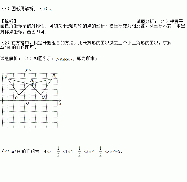 (1)在这个坐标系内画出△A1B1C1,使△A1B1C1与△ABC关于y轴对称;