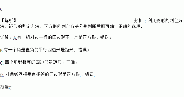 C. 四个角都相等的四边形是矩形 D. 对角线互相垂直相等的四边形是正方形.