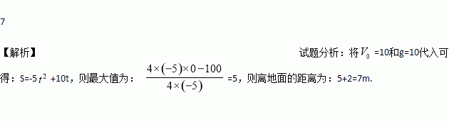 距离地面2m高的某处把一物体以初速度v0(m/s)竖直向上抛物出,在不计空气阻力的情况下,其上升高度s(m)与抛出时间t(s)满足: