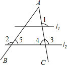 分析 根据两直线平行,同位角相等求出∠3,再根据邻补角的定义求出∠4、∠5,然后利用三角形的内角和定理列式计算即可得解.