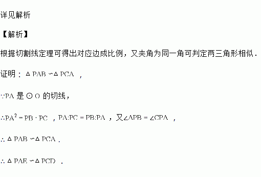 如图,切于点,割线交于、两点,的平分线分别交、于、两点.请在图中找出对相似三角形,并从中选择一对相似三角形说明其为什么相似.