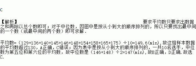 时间(min) | 129 | 136 | 140 | 145 | 146 | 148 | 154 | 158 | 165 | 175 |