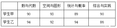 (2)如果数与代数、空间与图形、统计与概率、综合与实践的成绩按3:3:2:2计算,那么甲、乙的数学素质测试平均成绩分别为多少分?