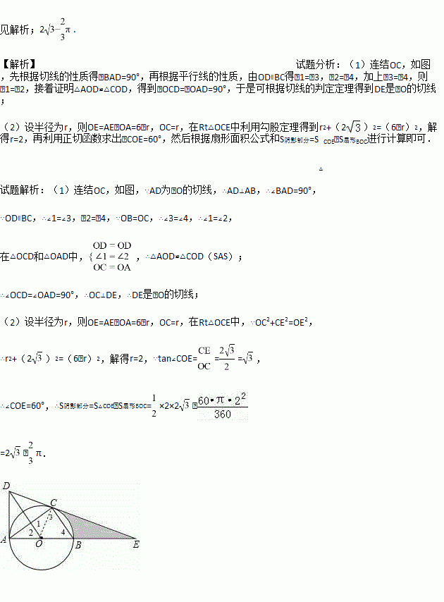 (1)求证:DE是⊙O的切线;