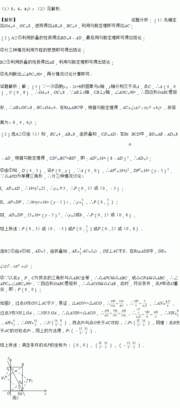 如图1,在平面直角坐标系中,一次函数y=﹣2x+8的图象与x轴,y轴分别交于点A,点C,过点A作AB⊥x轴,垂足为点A,过点C作CB⊥y轴,垂足为点C,两条垂线相交于点B.
