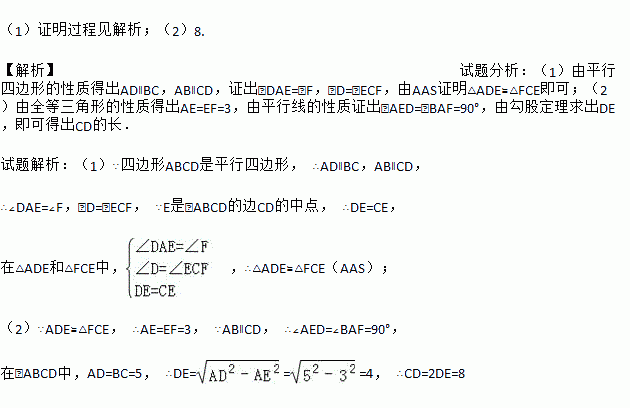 (1)求证:△ADE≌△FCE.