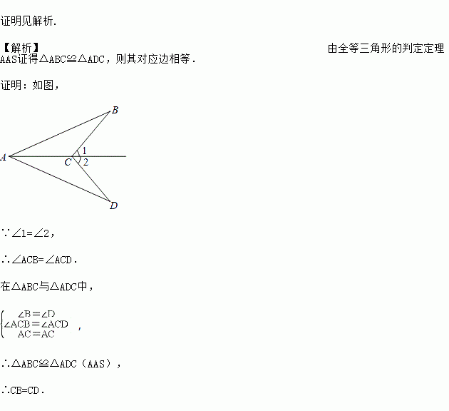 如图,已知∠1=∠2,∠B=∠D,求证:CB=CD.