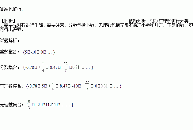 有理数集合:{ … } 无理数集合:{ … }