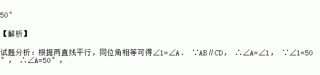 如图,平行线AB,CD被直线AE所截,∠1=50°,则∠A= .