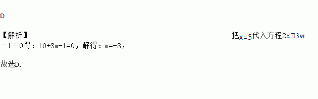 若x=5是关于x的方程2x+3m﹣1=0的解,则m的值为( )