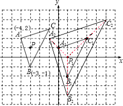 (2)延长P1A1到A2,使P1A2=2P1A1,延长P1B1到B2,使P1B2=2P1B1,延长P1C1到C2,使P1C2=2P1C1,顺次连接A2、B2、C2即可得到△A2B2C2,然后根据平面直角坐标系写出点的坐标即可.