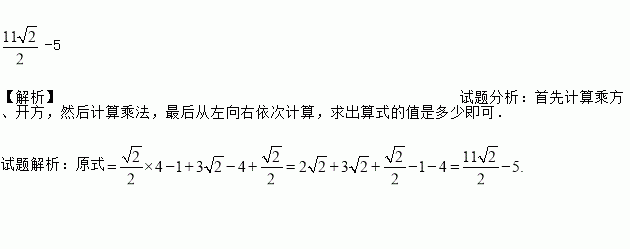 计算:cos45°•(﹣)﹣2 ﹣(2﹣)0+|4﹣|+.