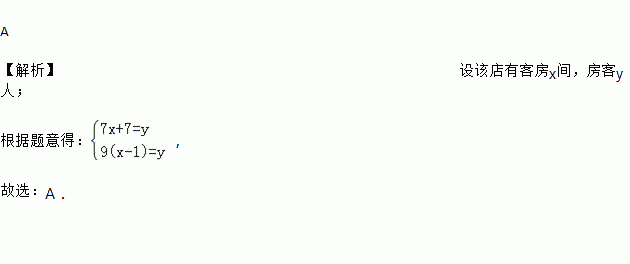 我国古代《算法统宗》里有这样一首诗:“我问开店李三公,众客都来到店中,一房七客多七客,一房九客一房空.”诗中后两句的意思是:如果每一间客房住7人,那么有7人无房住;如果每一间客房住9人,那么就空出一间客房.设该店有客房x间、房客y人,下列方程组中正确的是( )