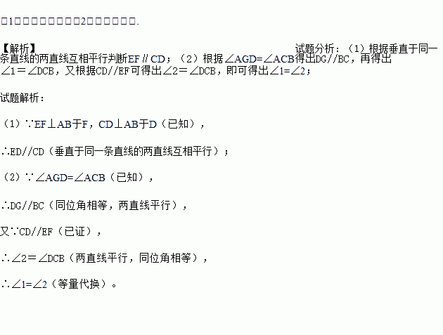 如图,EF⊥AB于F,CD⊥AB于D,点G在AC边上,且∠AGD=∠ACB.