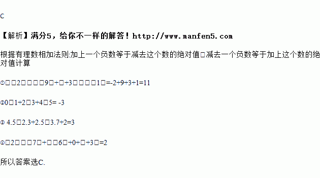 D. ﹣2﹣(﹣7)+(﹣6)+0+(+3)