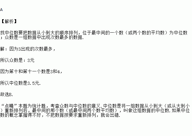 则这20名同学每天使用的零花钱的众数和中位数分别是( )