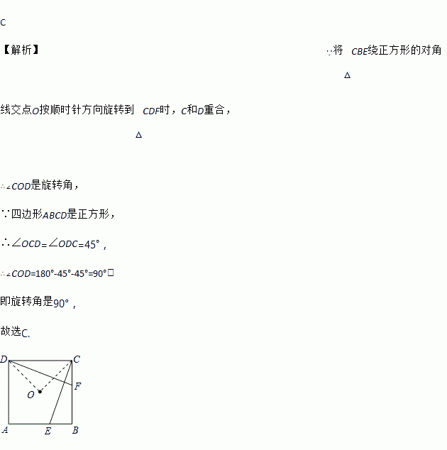 如图,E、F分别是正方形ABCD的边AB、BC上的点,BE=CF,连接CE、DF.△CDF可以看作是将△BCE绕正方形ABCD的中心O按逆时针方向旋转得到.则旋转角度为( )