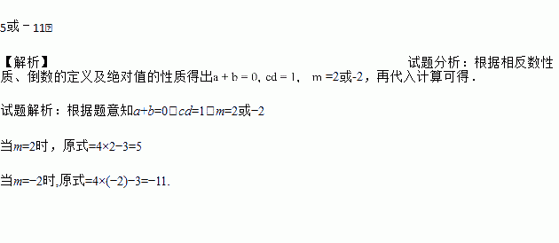 已知a、b互为相反数,c、d互为倒数,m的绝对值是2,求的值.