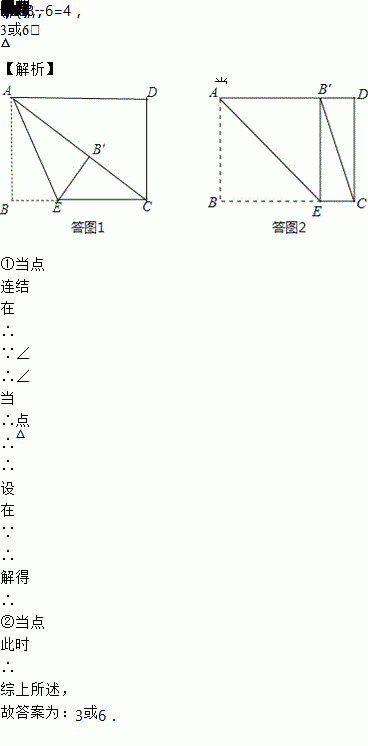 如图,矩形ABCD中,AB=6,BC=8,点E是BC边上一点,连接AE,把∠B沿AE折叠,使点B落在点B′处,当△CEB′为直角三角形时,BE的长为 .