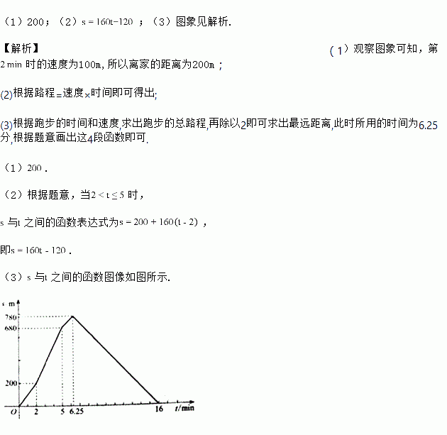 (1)小明出发第时离家的距离为 ![]()
