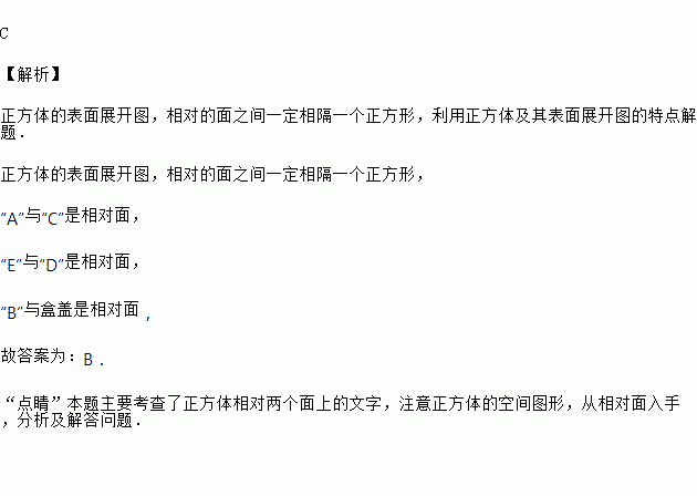 如果按图中虚线对折可以做成一个上底面为无盖的盒子,那么该盒子的下底面的字母是________.