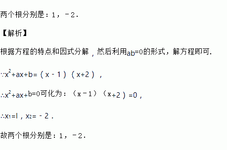 x2+ax+b分解因式的结果是(x﹣1)(x+2),则方程x2+ax+b=0的二根分别是什么?