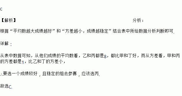 学校准备从甲、乙、丙、丁四个科创小组中选出一组代表学校参加青少年科技创新大赛,各组的平时成绩的平均数